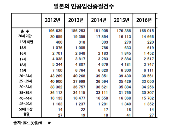 일본에서 한 해에 몇 번의 임신중절 수술이 진행될까.