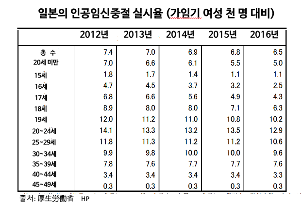 5년 전 자료이지만, 가임기(15세~49세) 여성 천 명 대비 약 6명 이상의 여성이 낙태 경험을 가지고 있다고 한다.