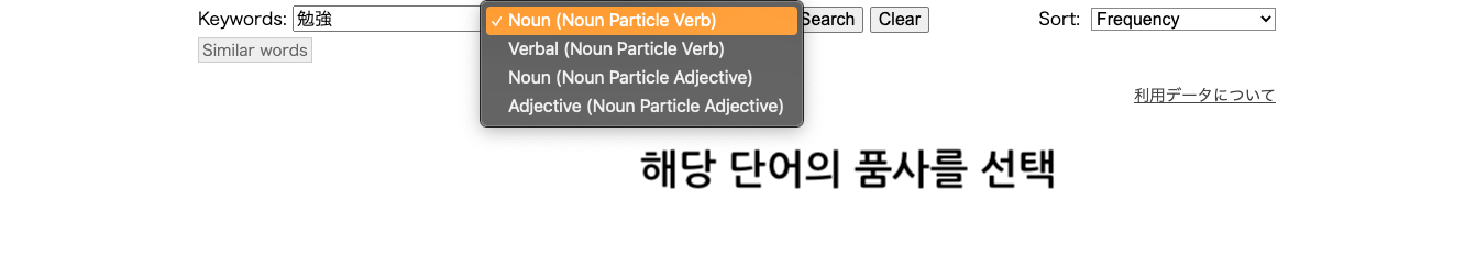 이 때, "勉強"는 명사이므로, 오른쪽의 Noun을 선택해준다.